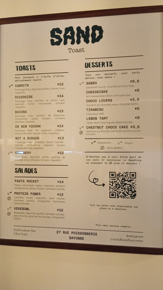 Nestled in the charming streets of Bayonne, Sand Toast stands out as a delightful café that captures the essence of French culinary simplicity with a twist. This quaint establishment specializes in toasted sandwiches that marry unique flavors and fresh ingredients, earning rave reviews from patrons. Visitors have praised the juxtaposition of classic and inventive fillings, with delectable options like aubergine, goat cheese, and honey. Each dish is crafted with care, ensuring customers leave with memorable flavors and satisfied appetites.